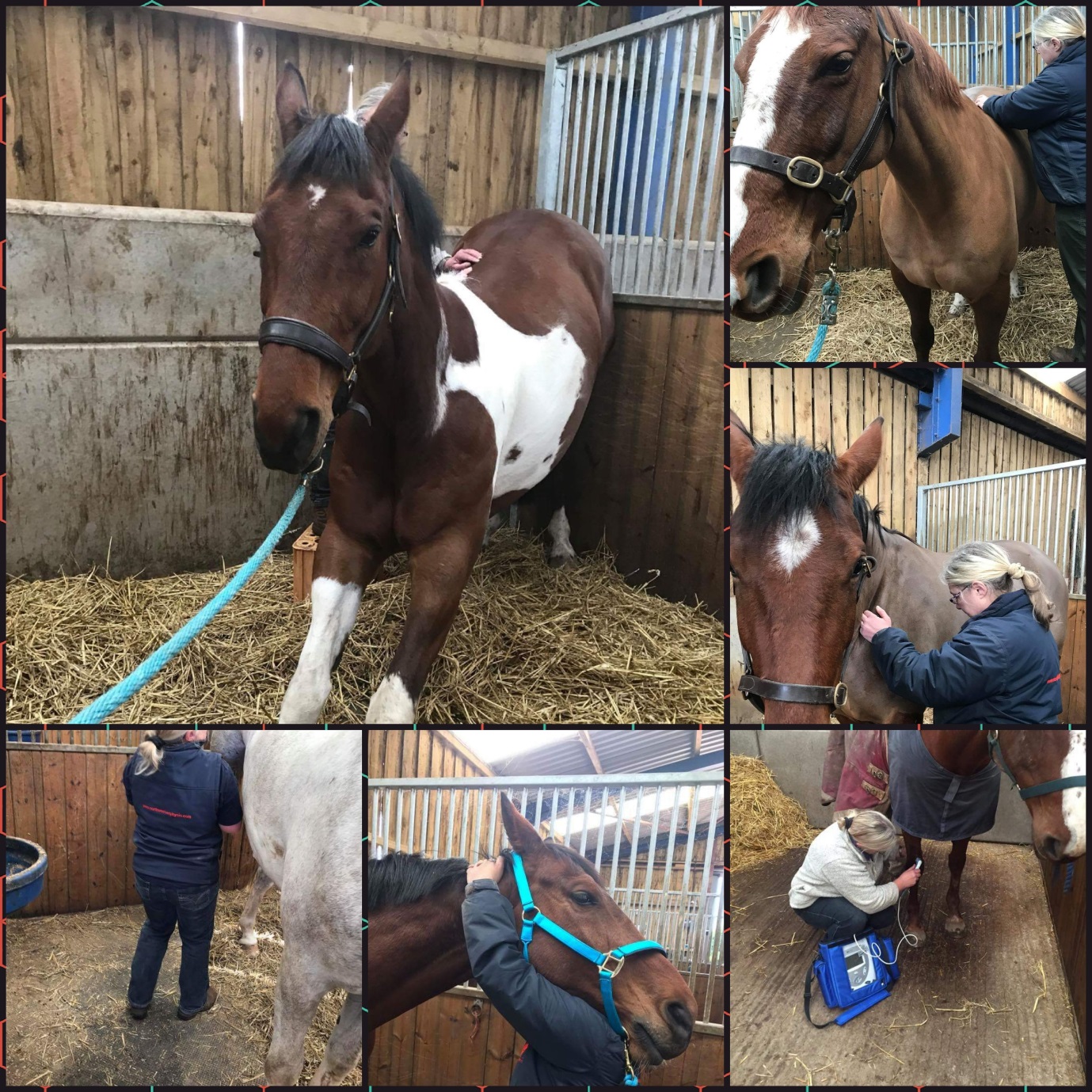 Following veterinary diagnosis and treatment, a combination of manual and electrotherapies and controlled progressive exercise programme can assist tissue healing and rehabilitation; reduce pain and inflammation, compensatory problems and scar tissue with the aim of returning the horse to maximum health and fitness, restoring function and mobility. Whether utilised in the initial stages of recovery to relieve pain and inflammation or in the later stages of healing or in chronic conditions, physiotherapy can aid better quality repair of tissues, help to re-educate movement and build strength.